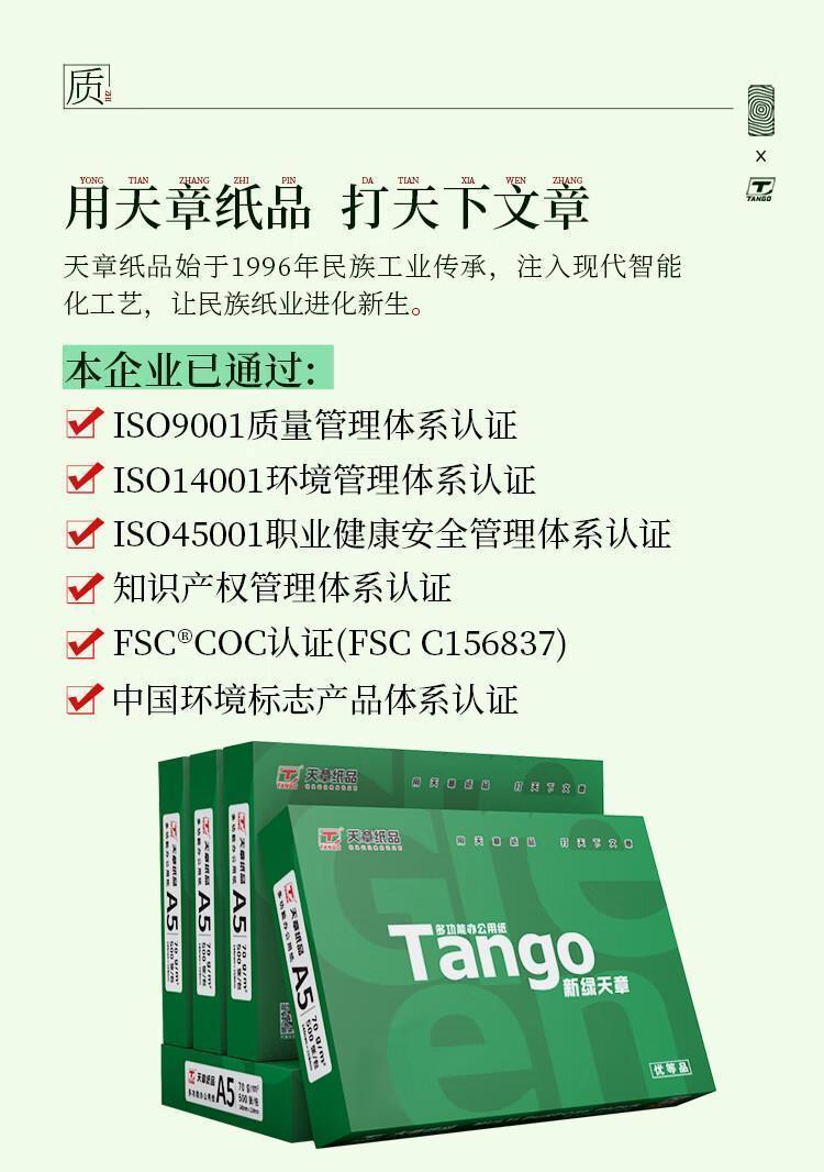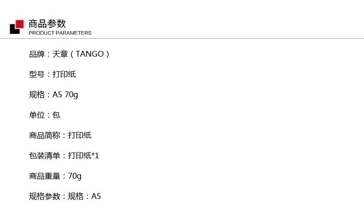 商品属性 [供应商] 深圳齐心集团股份有限公司 [品牌] 天章(TANGO) [型号] 打印纸