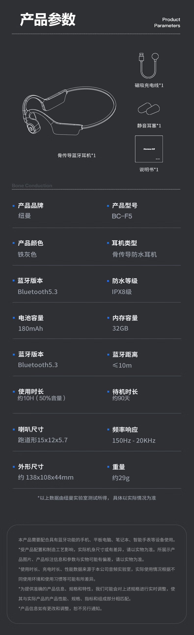 商品属性 [供应商] 苏宁易购集团股份有限公司 [型号] BC-F5 [类型] 无线耳机 [耳机频响范围] 150HZ-20KHZ [耳机阻抗] 无 [是否有线控] 无线控 [是否内置麦克风] 否 [耳机灵敏度] 无 [最大承载功率] 无 [插头直径] 2.5mm [佩戴方式] 耳挂式 [产地] 中国北京北京市