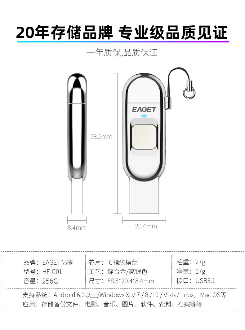 商品属性 [供应商] 德致商成集团有限公司 [特性] 高速读写U盘 [商品毛重] 27g [外壳材质] 金属 [最大写入速度] 100MB/s [最大读取速度] 100MB/s [接口] USB3.0,Type-C [产品尺寸] 长58.5mm;宽20.4mm;高8.4mm [系列] U盘 [产品净重(g)] 17 [U盘含资源包] 裸盘 [钥匙孔] 无钥匙孔 [优选服务] 三年质保 [包装清单] U盘*1 [容量] 256GB [指示灯] 有指示灯