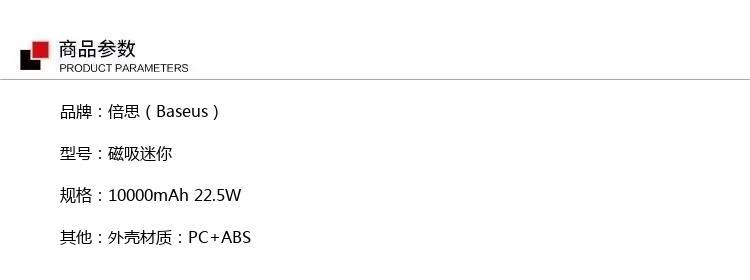 商品属性 [供应商] 深圳齐心集团股份有限公司 [品牌] 倍思(Baseus) [型号] 磁吸迷你 [外壳材质] PC+ABS