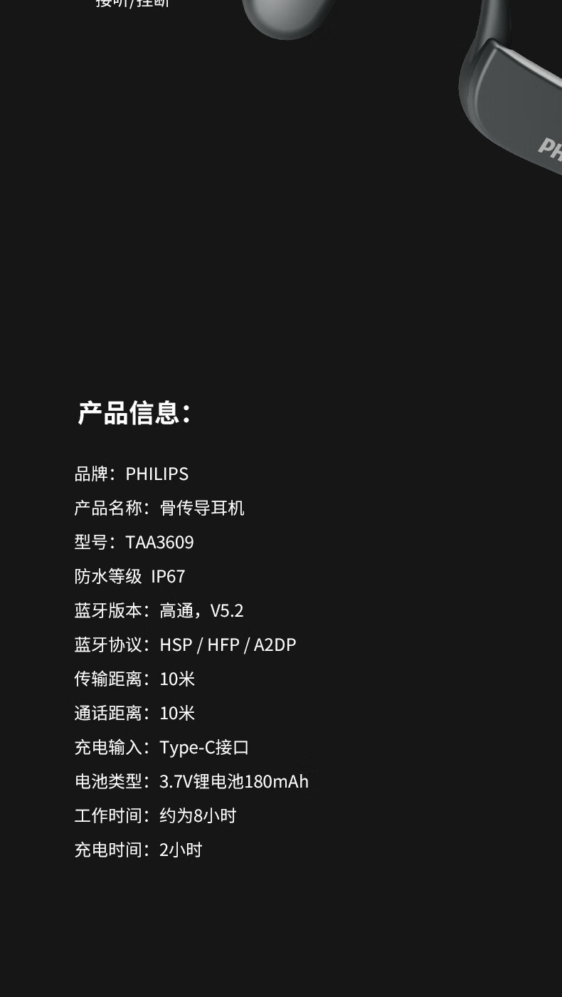 商品属性 [供应商] 苏宁易购集团股份有限公司 [型号] TAA3609 [类型] 无线耳机 [耳机频响范围] / [耳机阻抗] / [是否有线控] 无线控 [是否内置麦克风] 是 [耳机灵敏度] 10 [最大承载功率] 10 [插头直径] 6.3mm [佩戴方式] 耳塞式 [产地] 中国大陆 [开票单位] 个