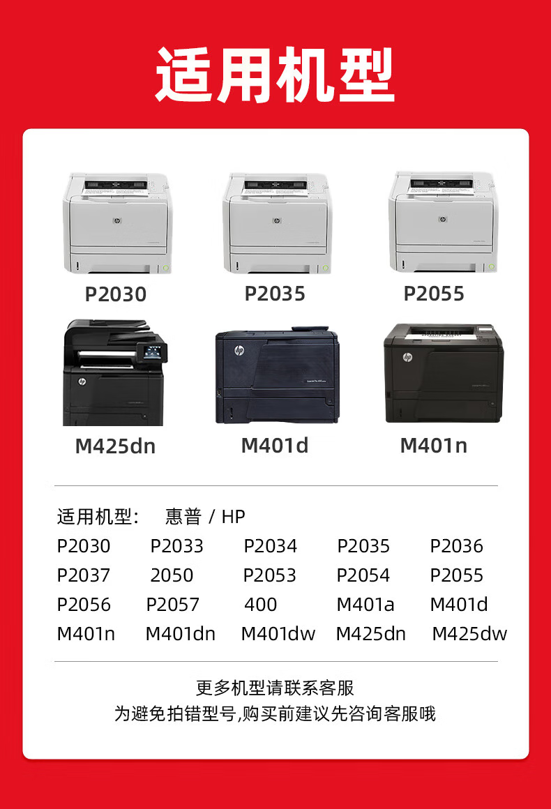 商品属性 [供应商] 苏宁易购集团股份有限公司 [型号] CE505A [类型] 硒鼓 [系列] 一体式硒鼓 [适用机型] 适用惠普HP P2035D P2035N P2055 P2055D CF280A M401dn M425dn [使用温度] 10-30° [尺寸(长×宽×高)] 345*120*170 [重量] 3.1千克 [打印量] 2500 [保质期] 2年 [产品特色] 一体式硒鼓 清晰 黑度稳定 遇水不化 [开票单位] 支