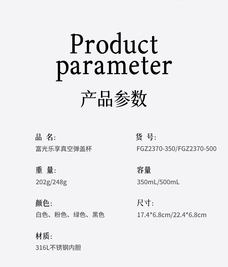 商品属性 [供应商] 得力集团有限公司 [品牌] 富光(FUGUANG) [型号] FGZ2370-500