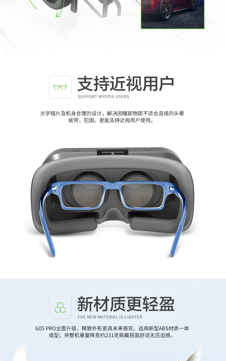 商品属性 [供应商] 德致商成集团有限公司 [分辨率] 无屏幕 [双眼分辨率] 无屏幕 [认证型号] G05Pro [延迟率] 小于等于20ms [最大瞳距调节范围] 62mm [屏幕材质] 无屏幕 [最小瞳距调节范围] 45mm [视场角] 110度
