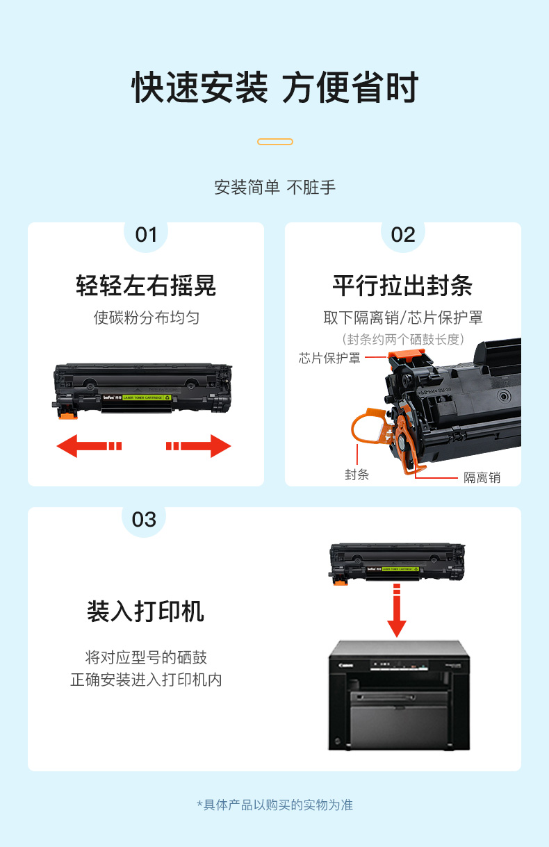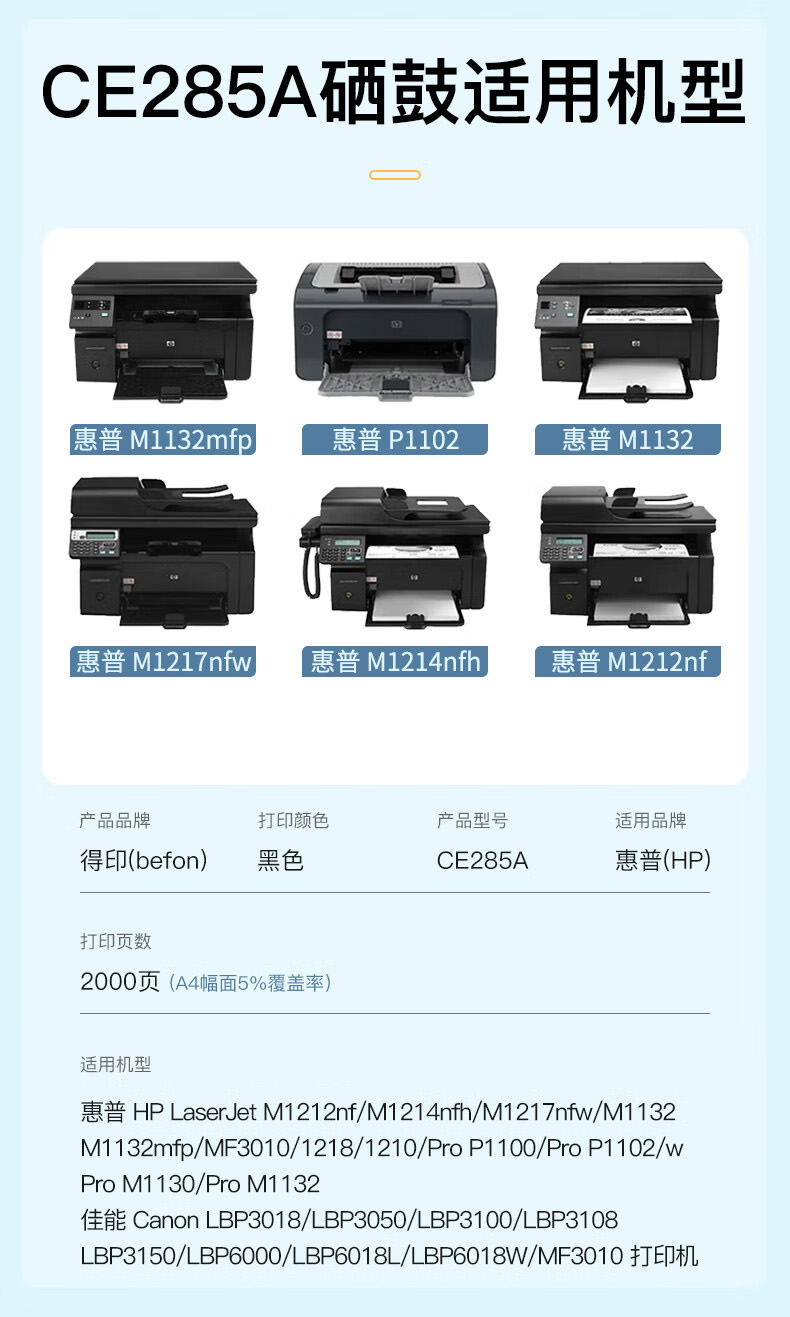 商品属性 [供应商] 深圳市怡亚通供应链股份有限公司 [品牌:] 得印(befon) [型号:] CE285A 标准版 [规格:] 2000页