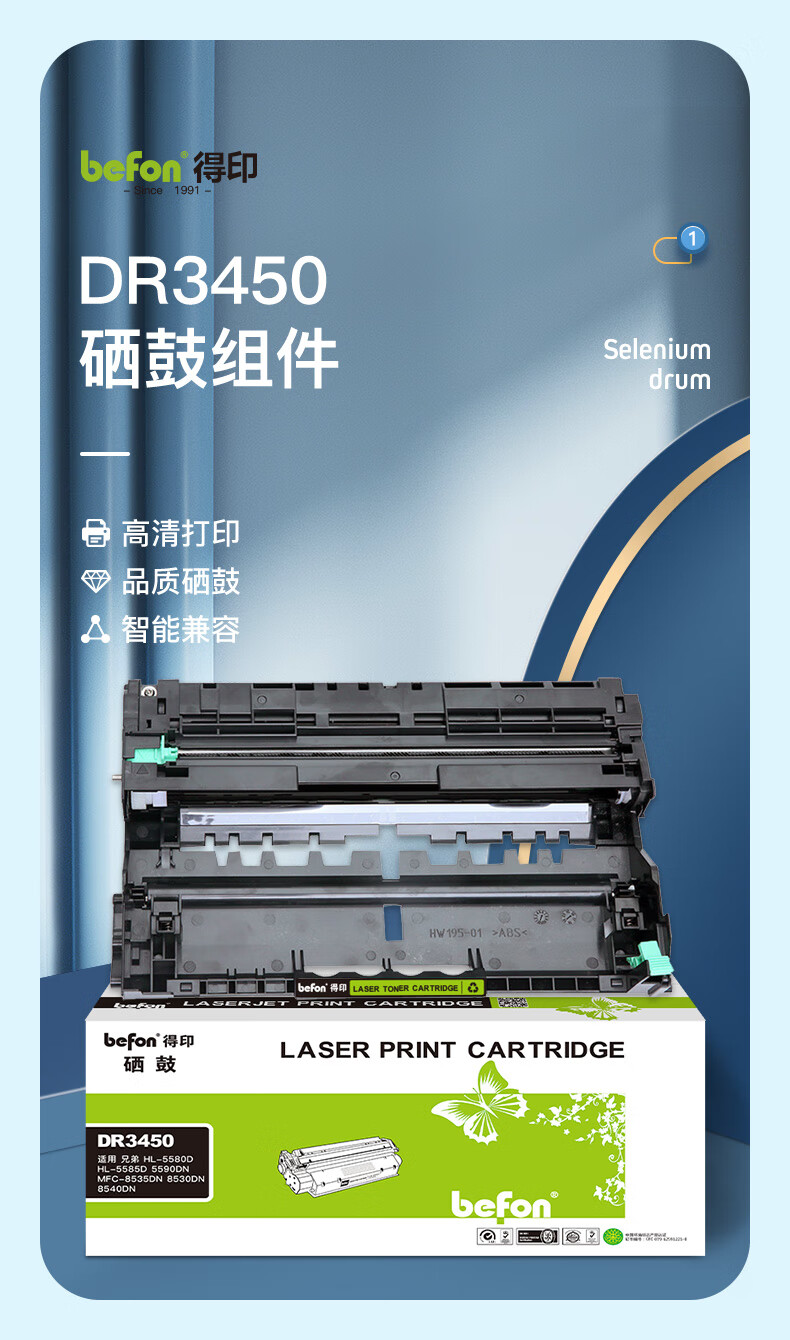 商品属性 [供应商] 德致商成集团有限公司 [打印页数] 50000页 [包装清单] DR3450硒鼓组件/硒鼓架*1支 [类别] 成像鼓 [类型] 通用耗材 [适用机型] MFC-8540DN/MFC-8535DN/MFC-8530DN/HL-5595DN/HL-5590DN/HL-5585D/HL-5580D
