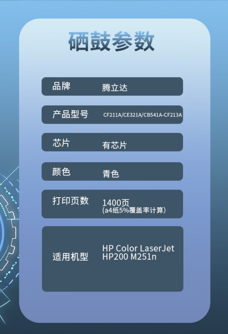 商品属性 [供应商] 史泰博(上海)有限公司 [品牌] 腾立达 [型号] CF211A/CE321A/CB541A-CF213A