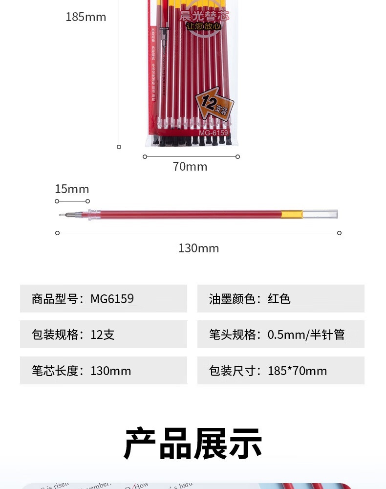 商品属性 [供应商] 深圳市怡亚通供应链股份有限公司 [品牌:] 晨光(M&G) [型号:] MG6159 [规格:] 0.5mm 12支/袋