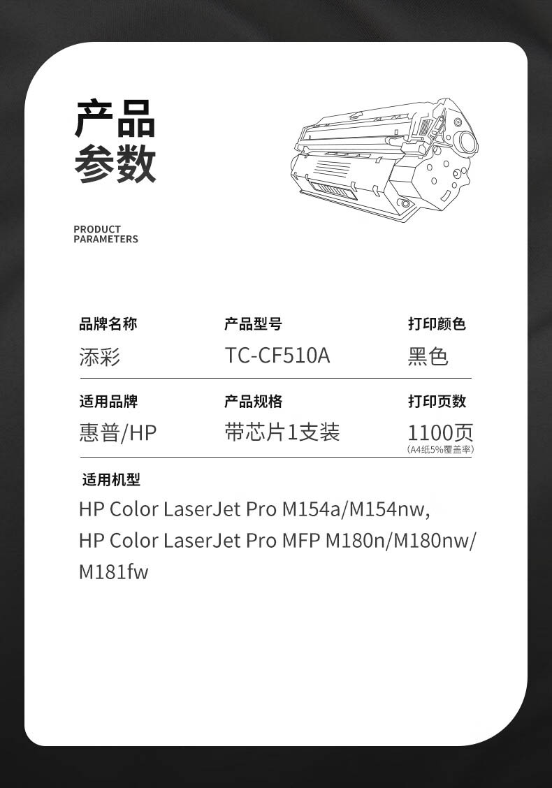 商品属性 [供应商] 德致商成集团有限公司 [打印页数] 1100页 [打印量] 1100页 [原装/通用] 通用耗材 [包装清单] 粉盒x1,产品说明书x1 [类别] 粉盒/粉仓 [适用机型] 惠普HP204aM154a M154nw M180n M180nw M180nw M181fw