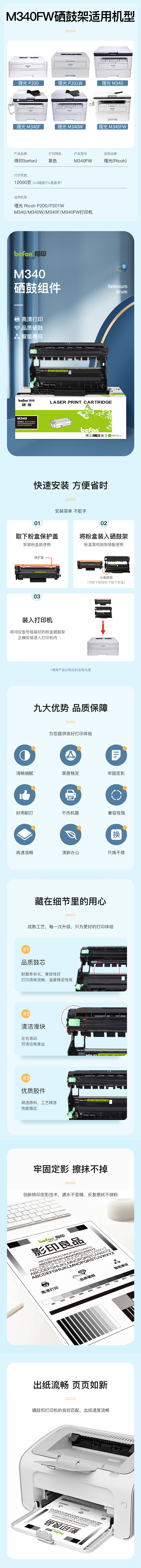 商品属性 [供应商] 得力集团有限公司 [品牌] 得印(befon) [型号] M340FW [商品标题] 得印(befon)兼容M340FW硒鼓(硒鼓组件)黑色单支装(适用理光 Ricoh P200;P201W;M340;M340W;M340F;M340FW打印机)打印页数:12000页(单位:支) [销售单位] 支