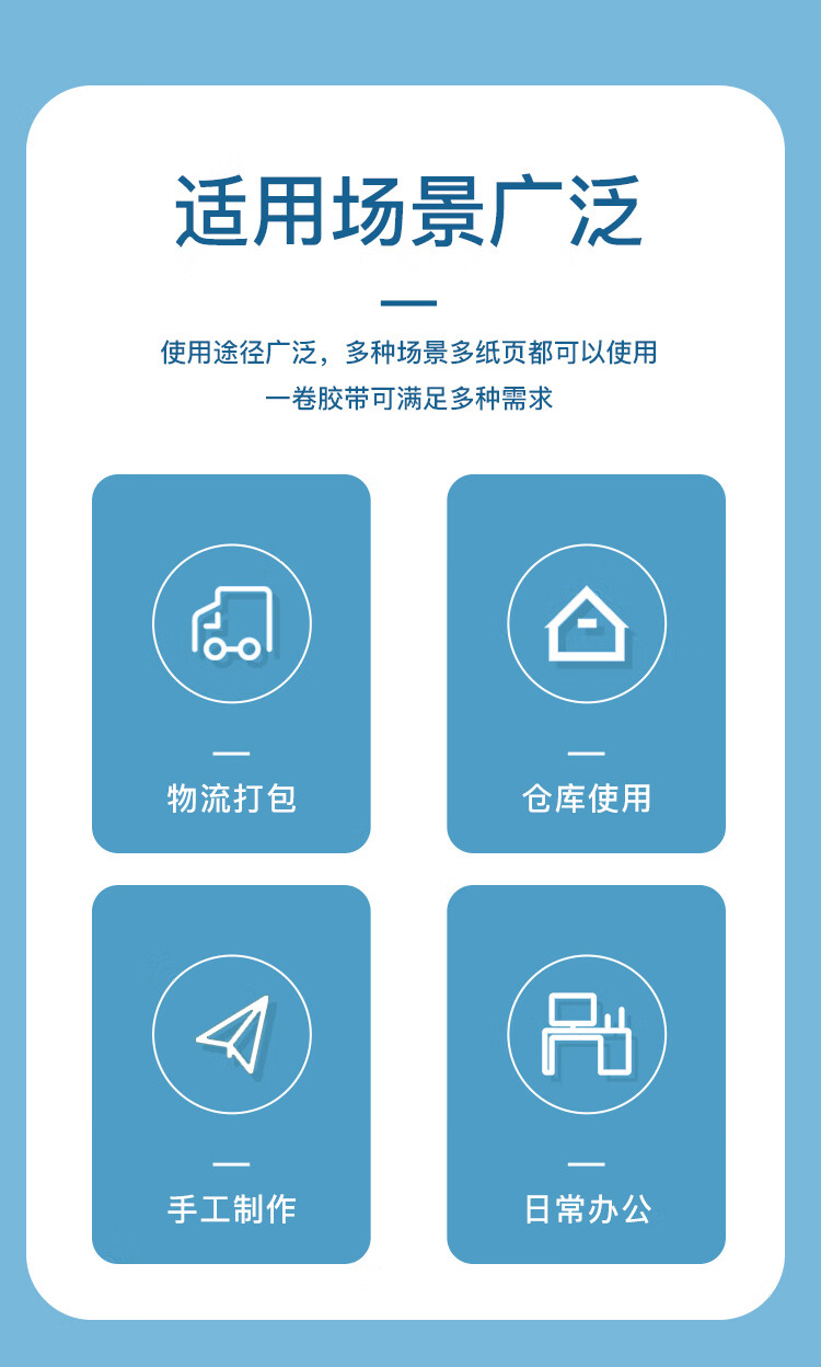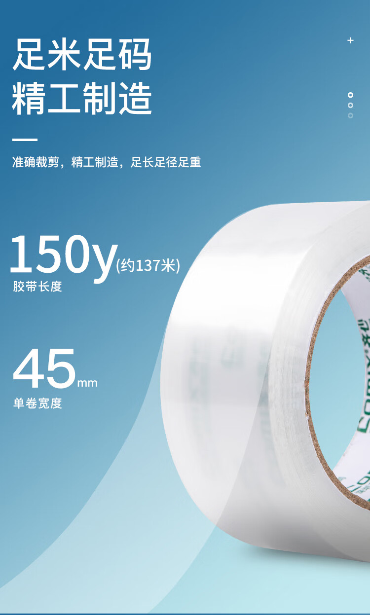 商品属性 [供应商] 德致商成集团有限公司 [产品尺寸(mm)] 45mm*150y [数量] - [单支净含量] - [包装规格] - [适用人群] - [类型] 胶带 [商品产地] 中国大陆