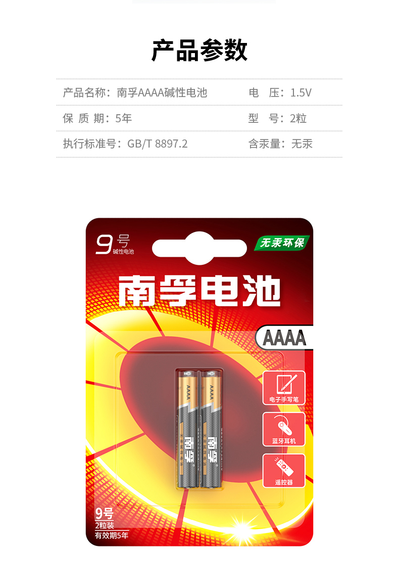 商品属性 [供应商] 科力普科技集团股份有限公司 [品牌] 南孚 [内包装] 2节/卡 20卡/盒 120卡/箱