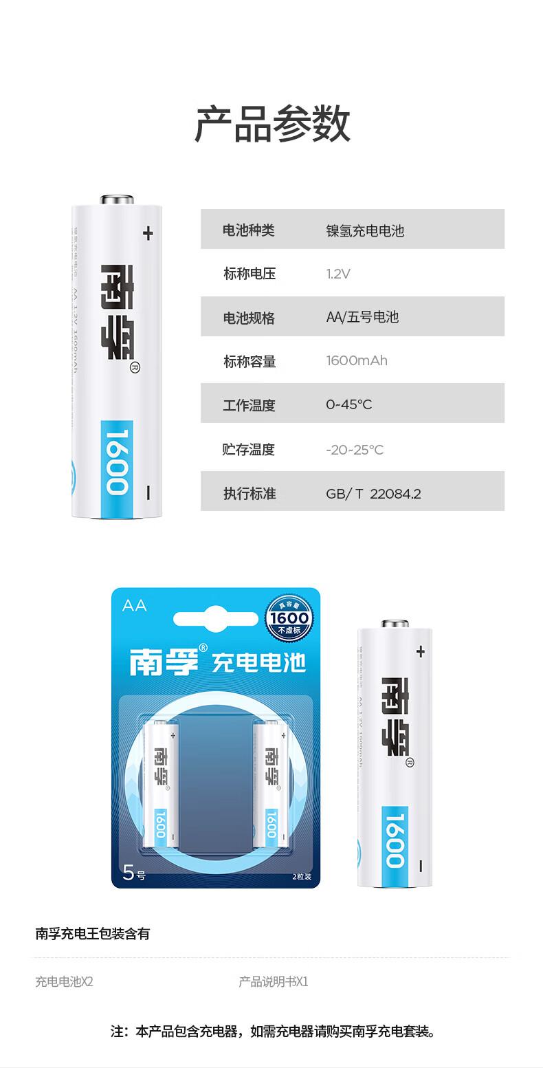商品属性 [供应商] 得力集团有限公司 [品牌] 南孚(NANFU) [型号] MAX1650mAh耐用型AA-2B [商品标题] 南孚5号MAX1650mAh耐用型AA-2B镍氢充电电池2粒/卡(卡) [销售单位] 卡