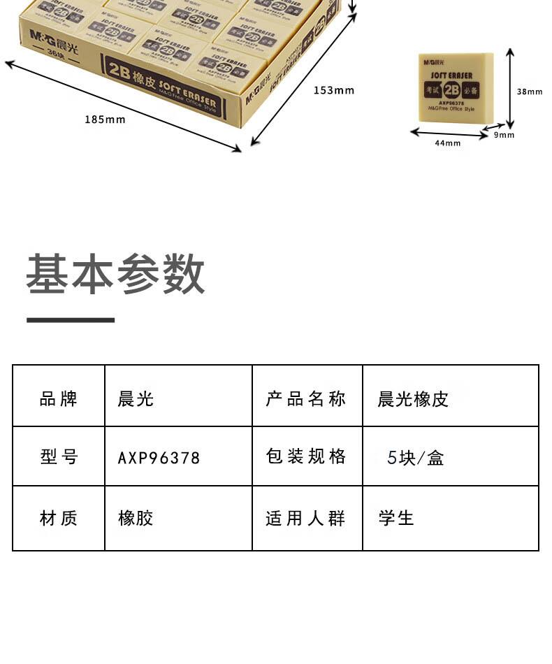 商品属性 [供应商] 深圳市怡亚通供应链股份有限公司 [品牌:] 晨光(M&G) [型号:] AXP96378 [规格:] 2B 5块/盒