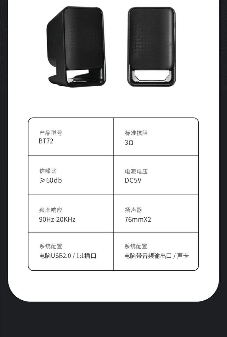 商品属性 [供应商] 深圳齐心集团股份有限公司 [品牌] 纽曼(Newmine) [型号] BT72 [频率效应] 90Hz-20KHz