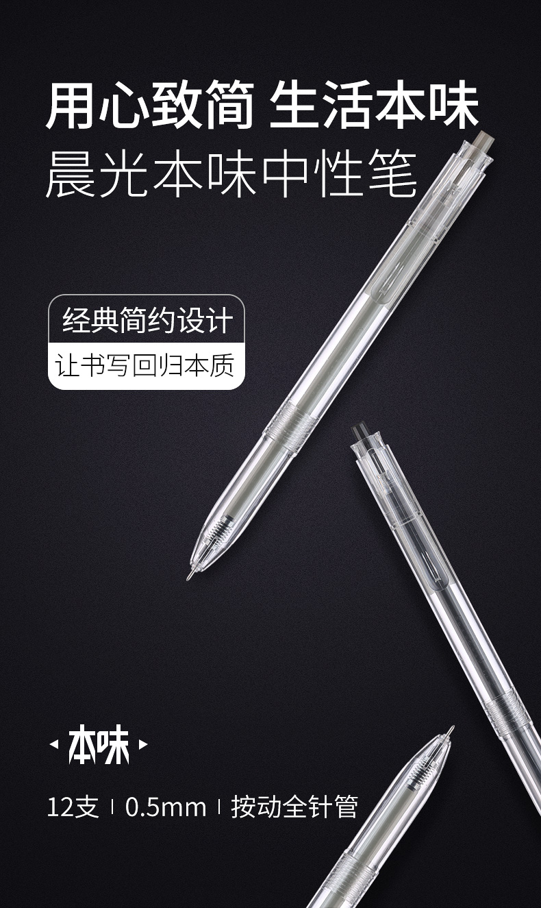 商品属性 [供应商] 科力普科技集团股份有限公司 [适用替芯] 9006 [打开方式] 按动式 [入数] 12支 [笔芯颜色] 黑色 [笔尖粗细] 0.5mm [品牌] 晨光 [型号] AGP81108 [内包装] 12支/盒