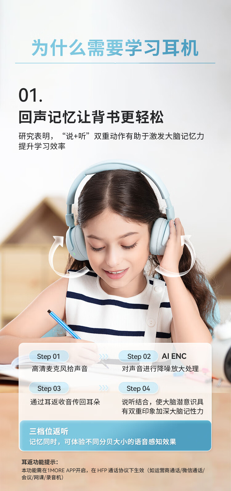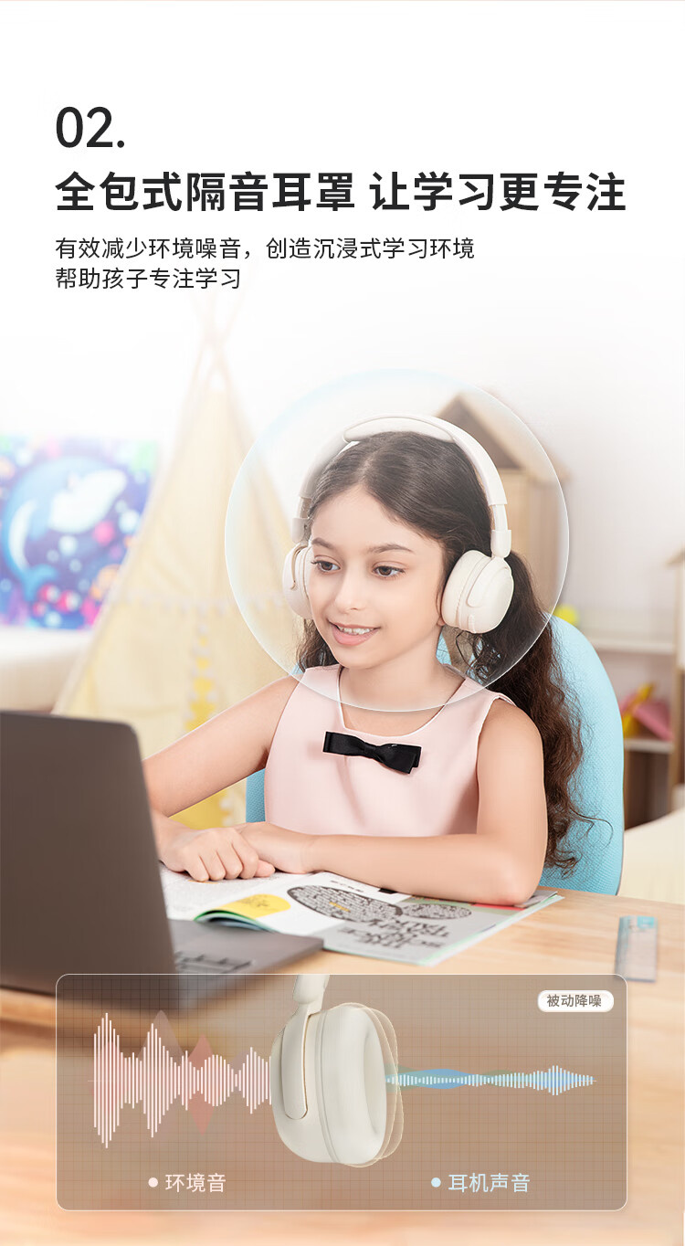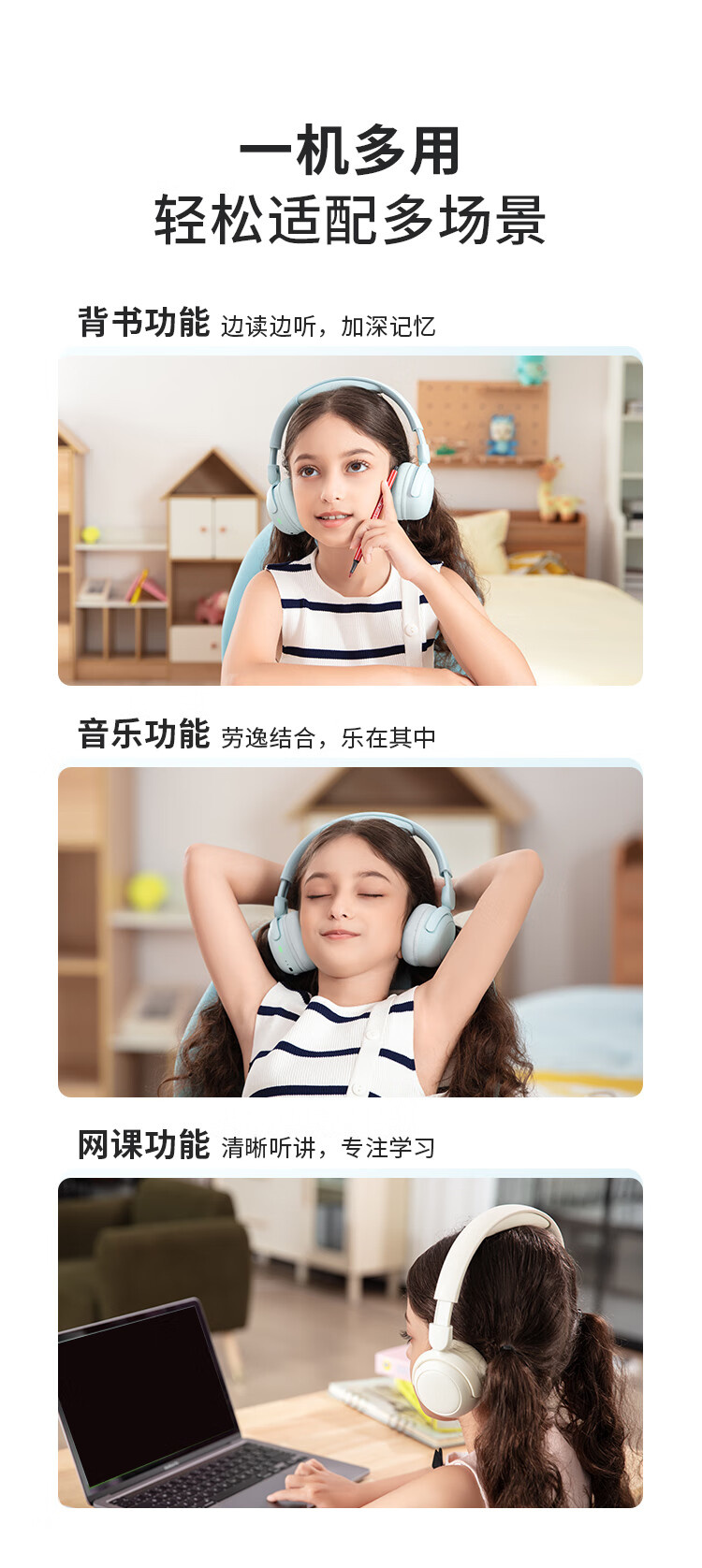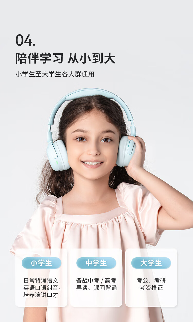 [产品特色] 高音质音乐学生背诵网课学习超长续航 听力保护学习专用