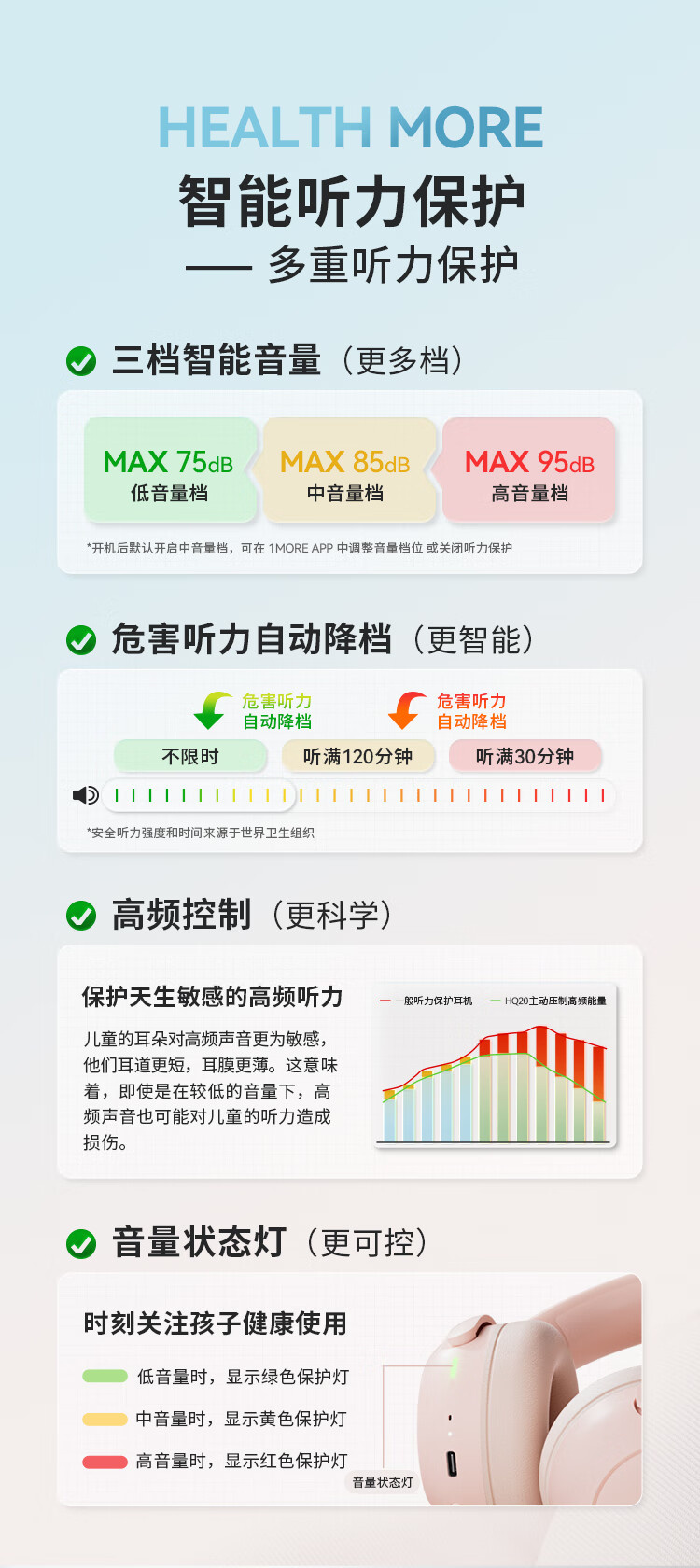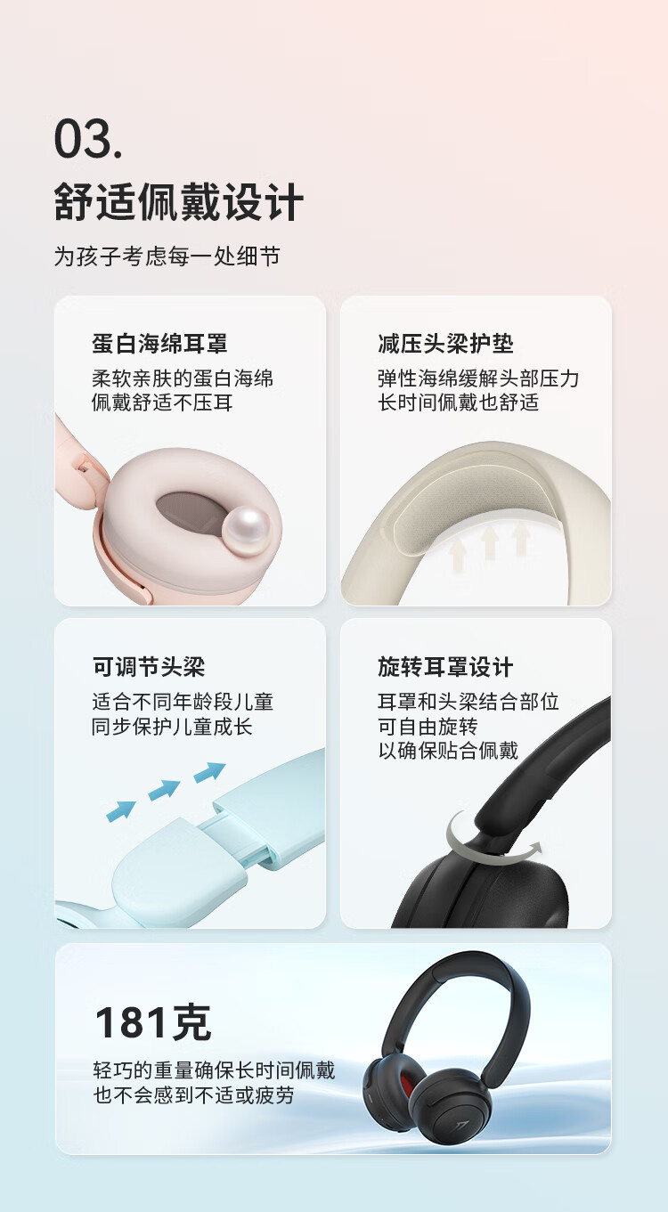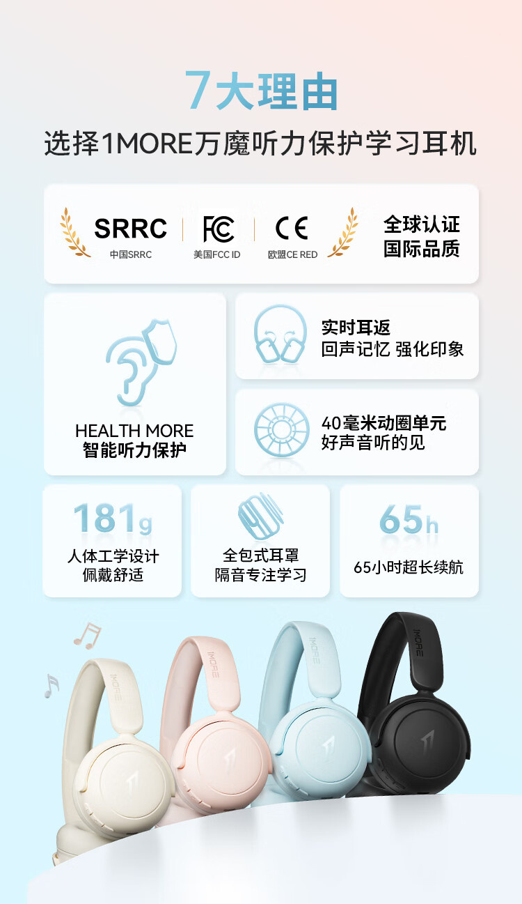 [产品特色] 高音质音乐学生背诵网课学习超长续航 听力保护学习专用