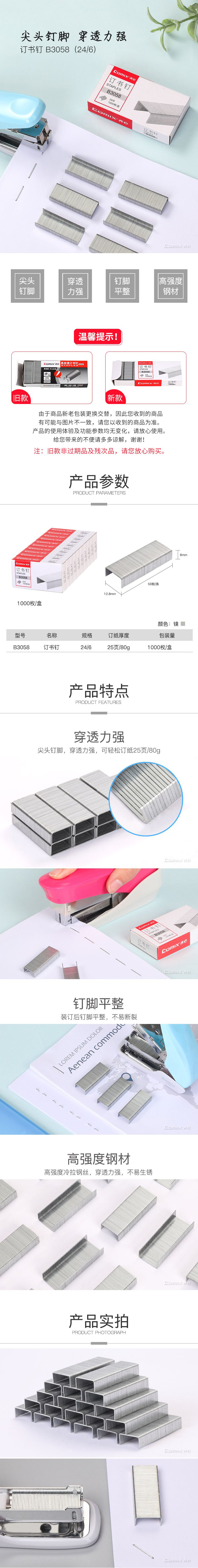 商品属性 [供应商] 全程速达科技有限公司 [名称] 内容 [品牌:] 齐心(COMIX) [商品名称:] 订书针 [型号:] B3058