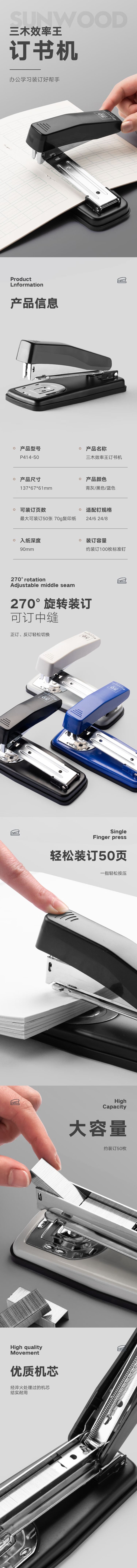 商品属性 [供应商] 全程速达科技有限公司 [名称] 内容 [品牌:] 三木(SUNWOOD) [商品名称:] 效率王系列 旋转式厚层订书机 [型号:] P414-50