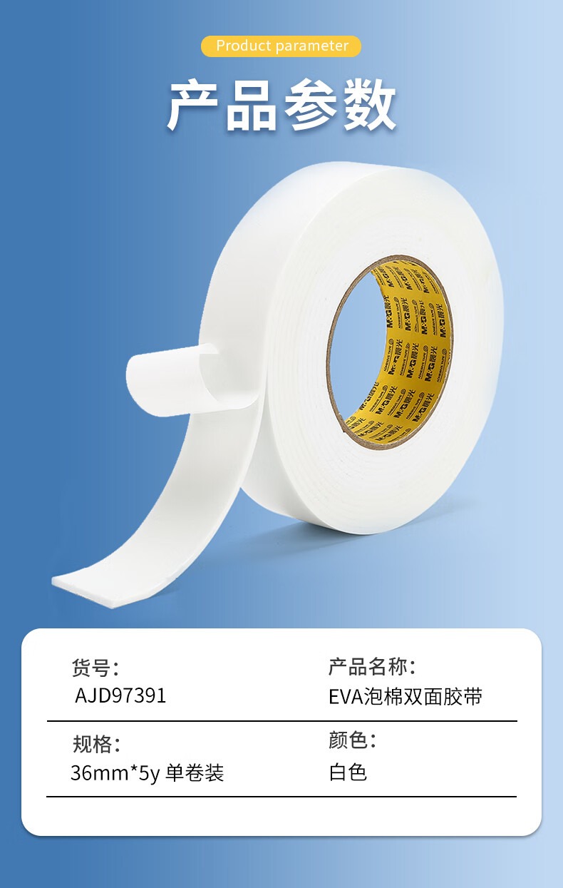 商品属性 [供应商] 深圳市怡亚通供应链股份有限公司 [品牌:] 晨光(M&G) [型号:] AJD97391(AJD957Y6) [规格:] 36mm*5y 单卷装