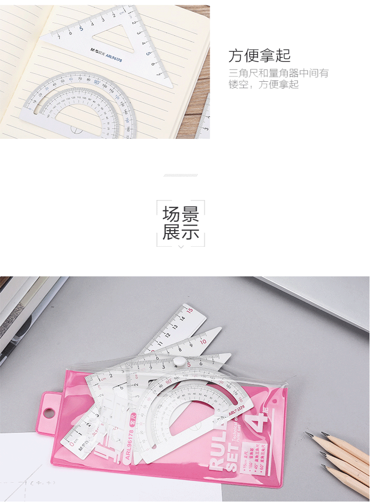 商品属性 [供应商] 德致商成集团有限公司 [商品毛重] 40.00g [包装规格] 单件装 [适用人群] 通用 [类型] 考试绘图套8尺铝合金(直尺+三角尺*2+量角器)4件套颜色随机 [商品产地] 中国大陆