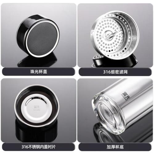 商品属性 [供应商] 大江科技集团有限公司 [适用人群] 男士,女士 [尺寸] 21.25*7cm [容量] 400ml [型号] G2340-SH-400 [材质] 高硼硅玻璃杯体、316不锈钢滤网/内盖衬片 [使用场景] 居家,职场,车用