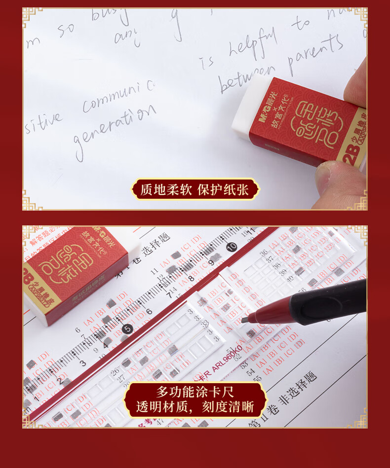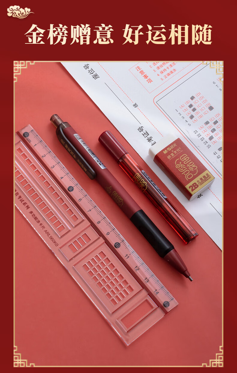 商品属性 [供应商] 德致商成集团有限公司 [特性] 可伸缩笔头 [产地] 中国 [包装清单] 晨光(M&G)文具2B黑色考试涂卡套装(活动铅笔*1/铅芯*1/橡皮*1/涂卡尺*1)故宫金榜题名系列涂卡4件套HAMP1455 [商品产地] 中国