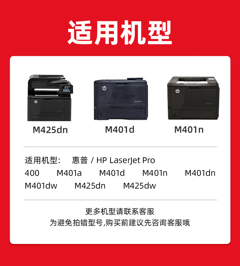 商品属性 [供应商] 德致商成集团有限公司 [打印页数] 3000页 [适用机型] 惠普HP M401d M401n M401dn M425dn M425dn HP400打印机