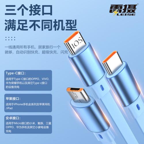 商品属性 [供应商] 全程速达科技有限公司 [名称] 内容 [品牌:] 雷摄(LEISE) [商品名称:] 100W三合一伸缩数据线 [型号:] LS-LGXPD01