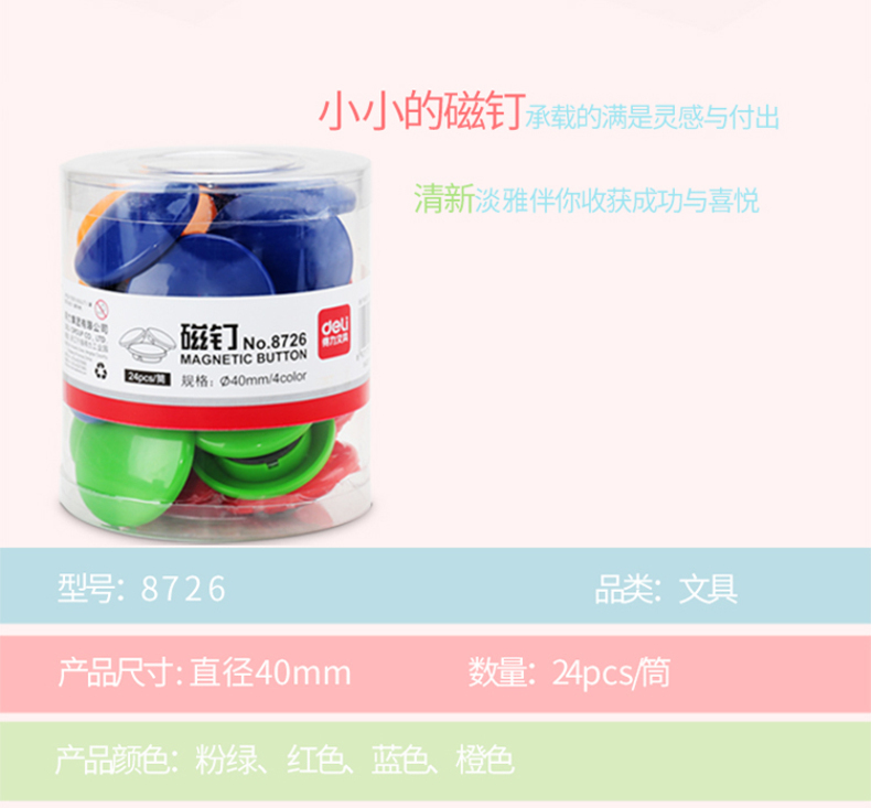 商品属性 [供应商] 科力普科技集团股份有限公司 [品牌] 得力 [型号] 8726 [内包装] 24粒/筒