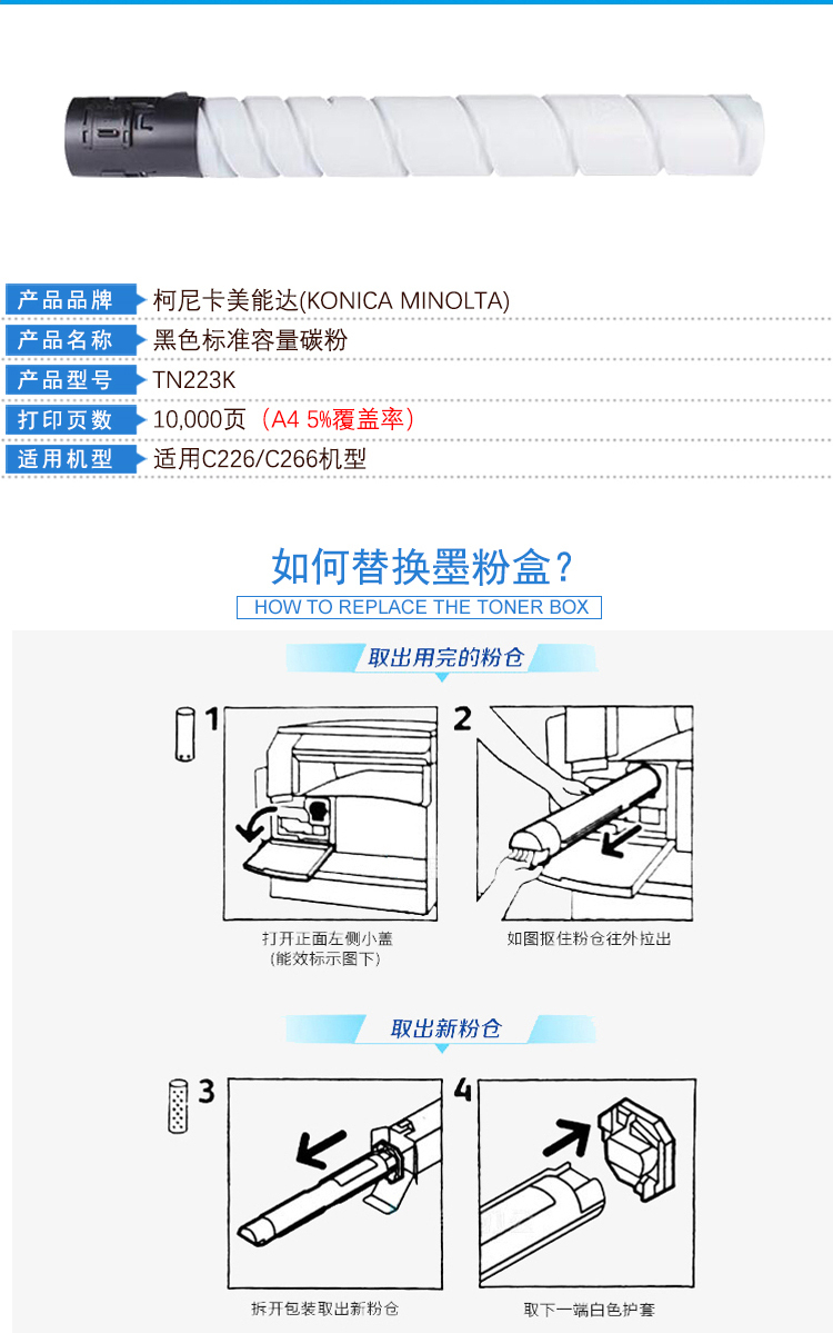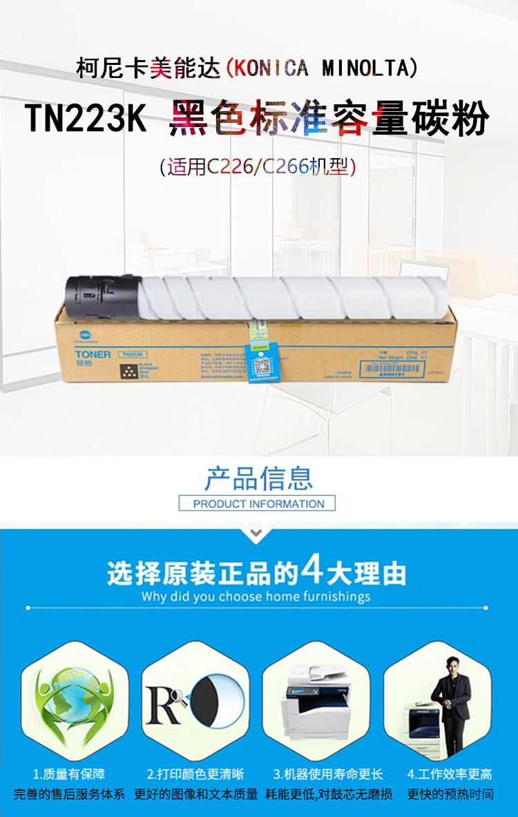商品属性 [供应商] 得力集团有限公司 [品牌] 柯尼卡美能达(KONICA MINOLTA) [型号] TN223(标准容量)