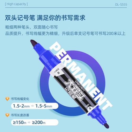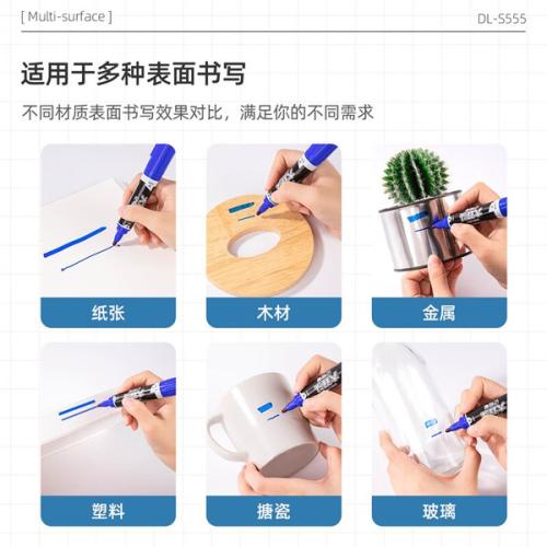 商品属性 [供应商] 德致商成集团有限公司 [产地] 中国 [笔芯颜色] 蓝色 [笔头特性] 双头 [适用场景] 商务 [笔尖材质] 纤维 [书写粗细] 1.5-5mm [包装形式] 纸盒装 [支数] 10支 [商品产地] 中国大陆 [产品尺寸] 143*105*40mm [数量] 10支 [是否可加墨] 不可加墨 [类型] 油性笔