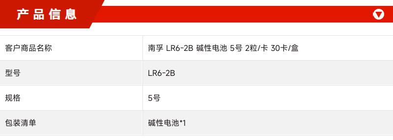 商品属性 [供应商] 史泰博(上海)有限公司 [品牌] 南孚 [型号] LR6-2B