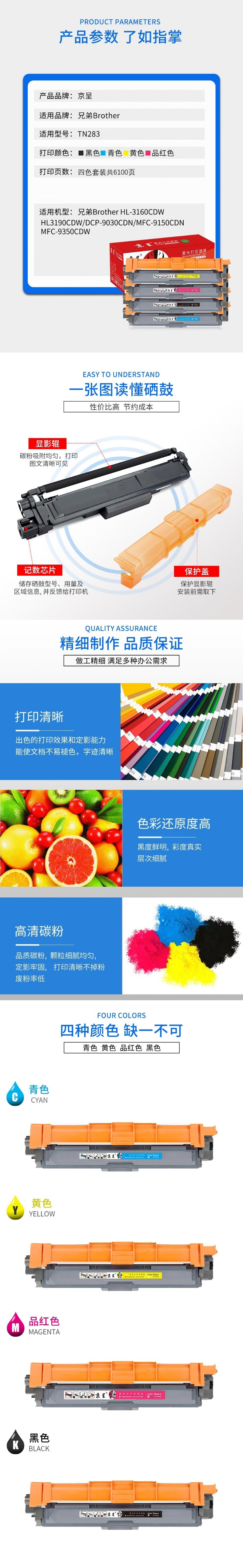 商品属性 [供应商] 深圳市怡亚通供应链股份有限公司 [品牌:] 京呈 [型号:] TN283 [规格:] 四色套装共6100页