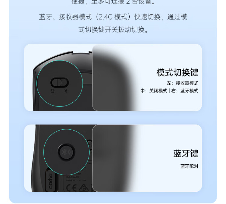 商品属性 [供应商] 得力集团有限公司 [鼠标尺寸] 小手适用型( [供电方式] 锂电池 [型号] M350L [鼠标重量] 61-79g [电池容量] 500-999mAh [兼容系统] Windows [材质] 磨砂材质 [连接方式] 无线2.4G,蓝牙 [鼠标类型] 右手型 [同时连接设备数量] 2台