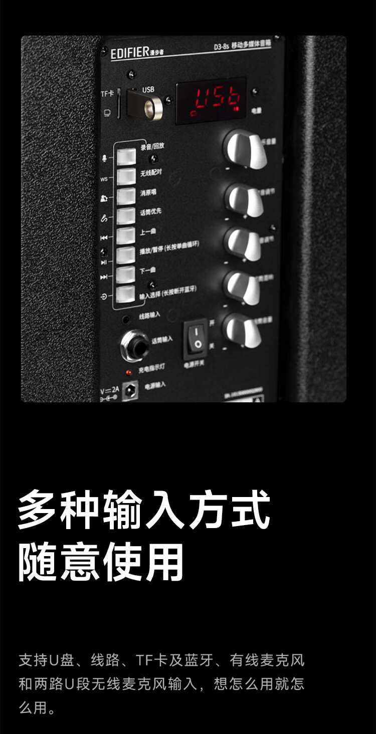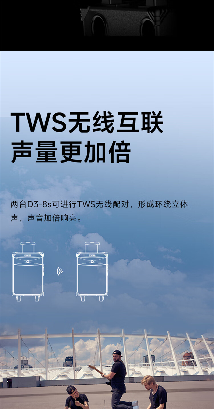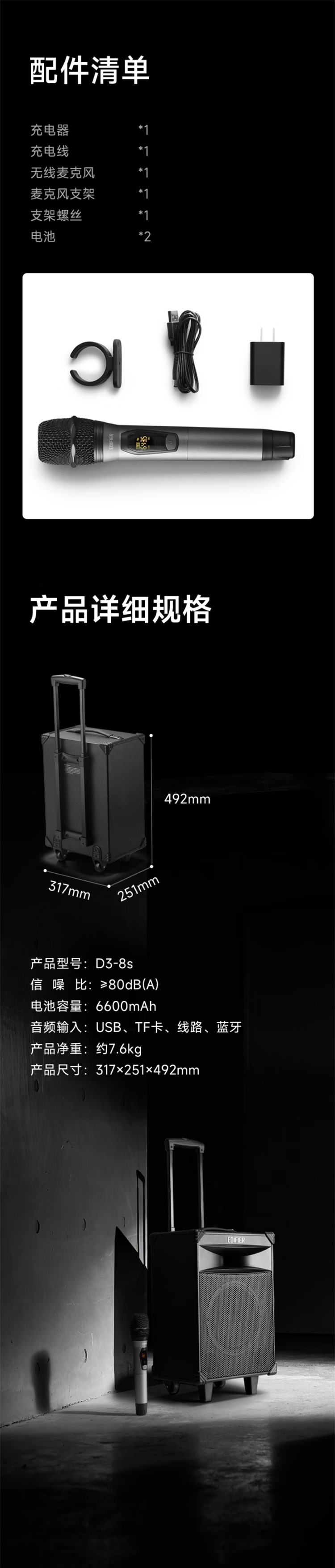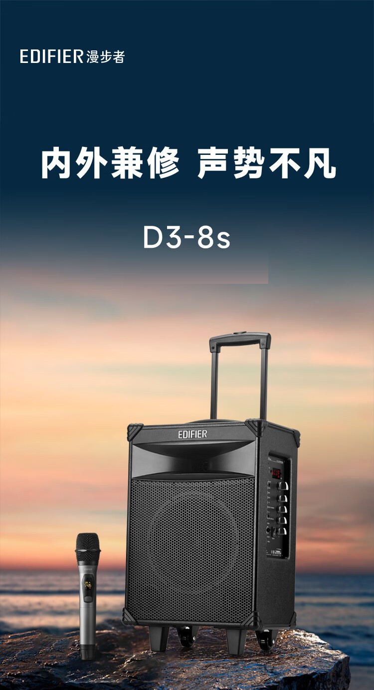 商品属性 [供应商] 深圳齐心集团股份有限公司 [品牌] 漫步者(EDIFIER) [型号] D3-8s [产品尺寸] 317*251*492mm [电池容量] 6600mAh