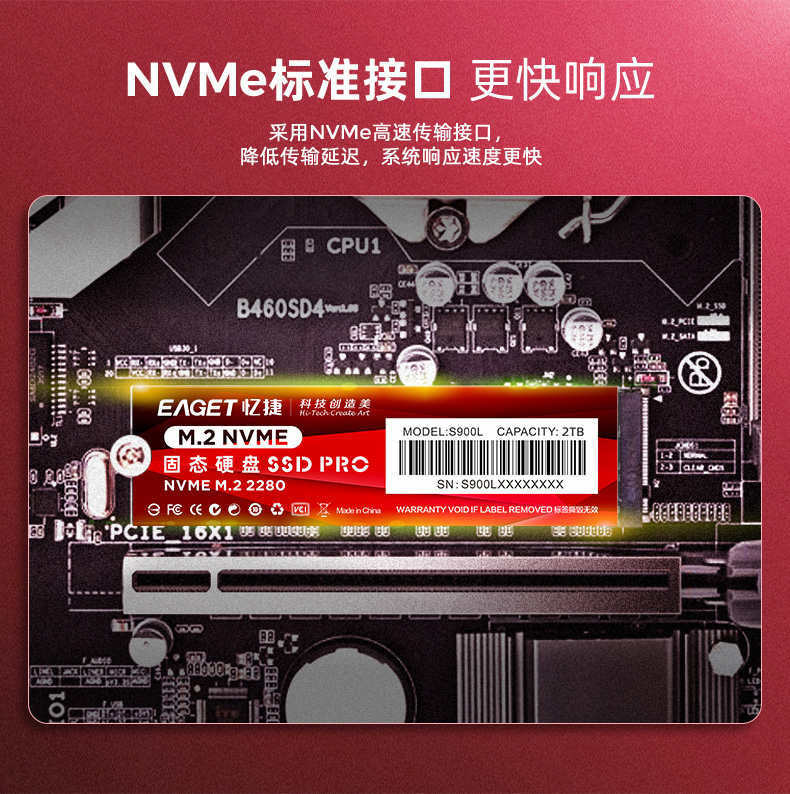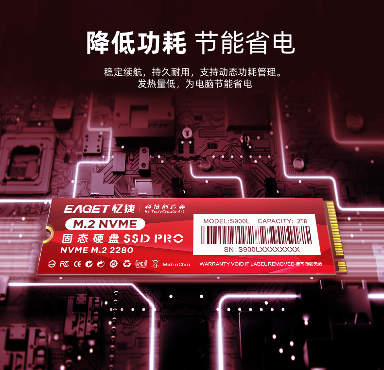 商品属性 [供应商] 得力集团有限公司 [品牌] 忆捷(EAGET) [型号] S900L-2T [商品标题] 忆捷(EAGET)S900L-2T SSD固态硬盘(2280、NVME协议、PCIE通道)个 [销售单位] 个