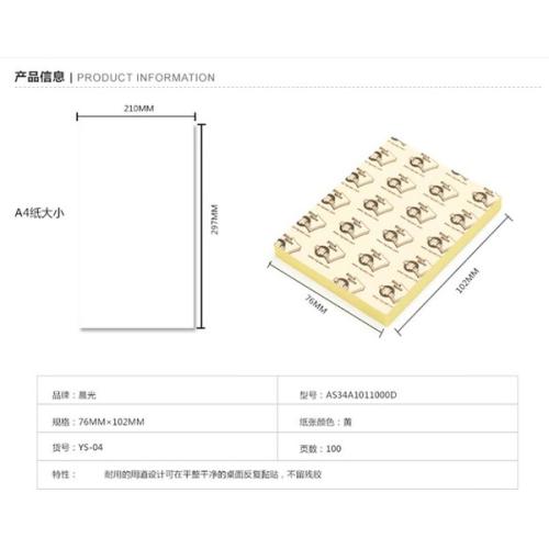 商品属性 [供应商] 大江科技集团有限公司 [品牌] 晨光(M&G) [包装数量] 100页/包 [型号] YS-04