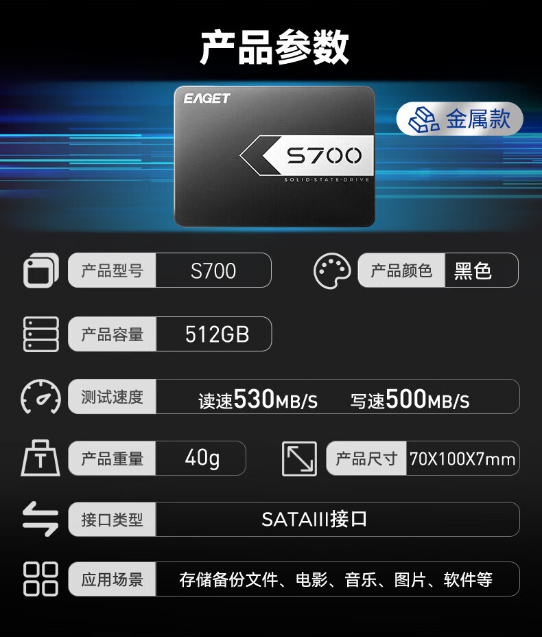 商品属性 [供应商] 北京京东世纪信息技术有限公司 [系列] S700 [闪存类型] 其他 [型号] S700 [缓存] 无缓存 [顺序写入] 500MB/s [顺序读速] 530MB/s