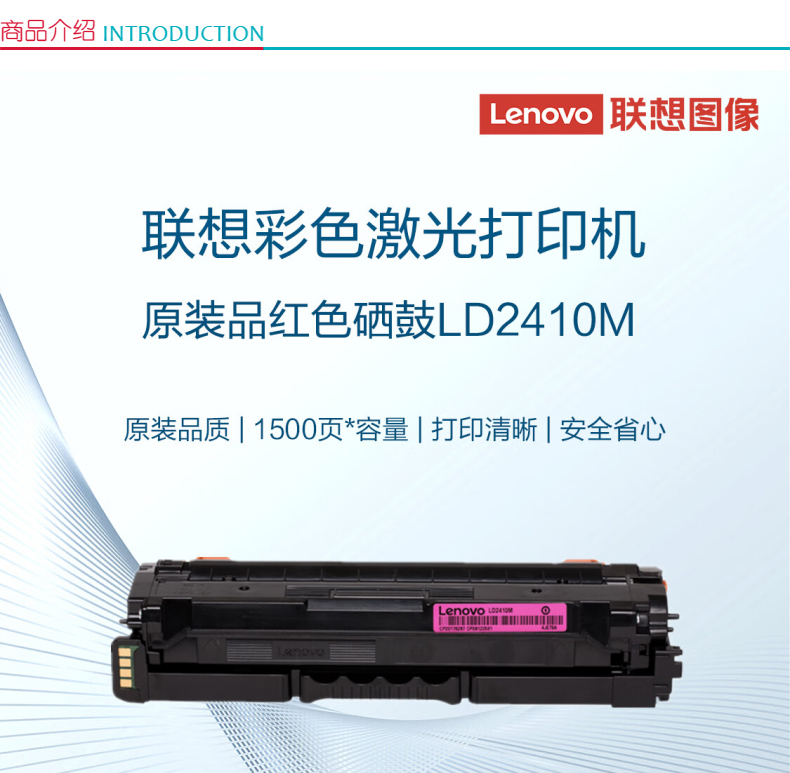 商品属性 [供应商] 科力普科技集团股份有限公司 [打印量] A4 5% 覆盖率 约1500 页 [适用机型] 适用于CS2410DN彩色激光打印机 [品牌] 联想 [型号] LD2410M