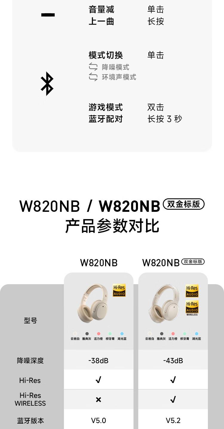 商品属性 [供应商] 深圳齐心集团股份有限公司 [品牌] 漫步者(EDIFIER) [型号] W820NB [防水等级] 无防水