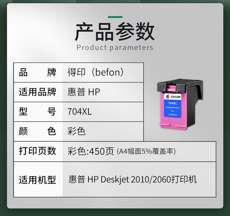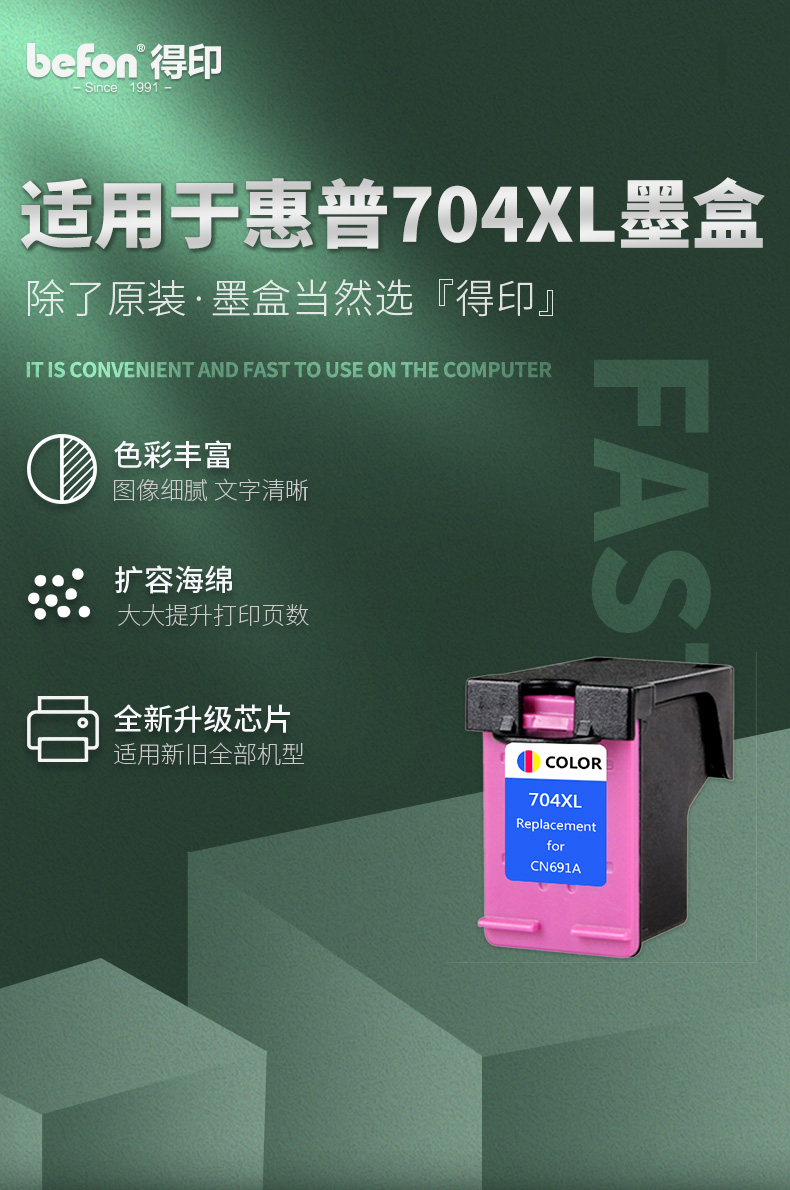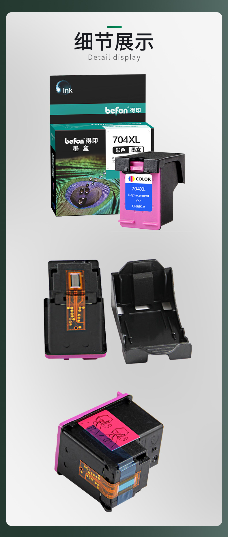 商品属性 [供应商] 深圳市云中鹤科技股份有限公司 [品牌名称:] 得印(befon) [商品型号:] 704XL [商品sku编码:] 1125899908225572 [重量:] 0.20kg [产地:] 中国 [单位:] 支