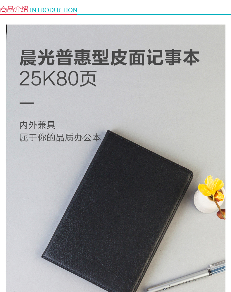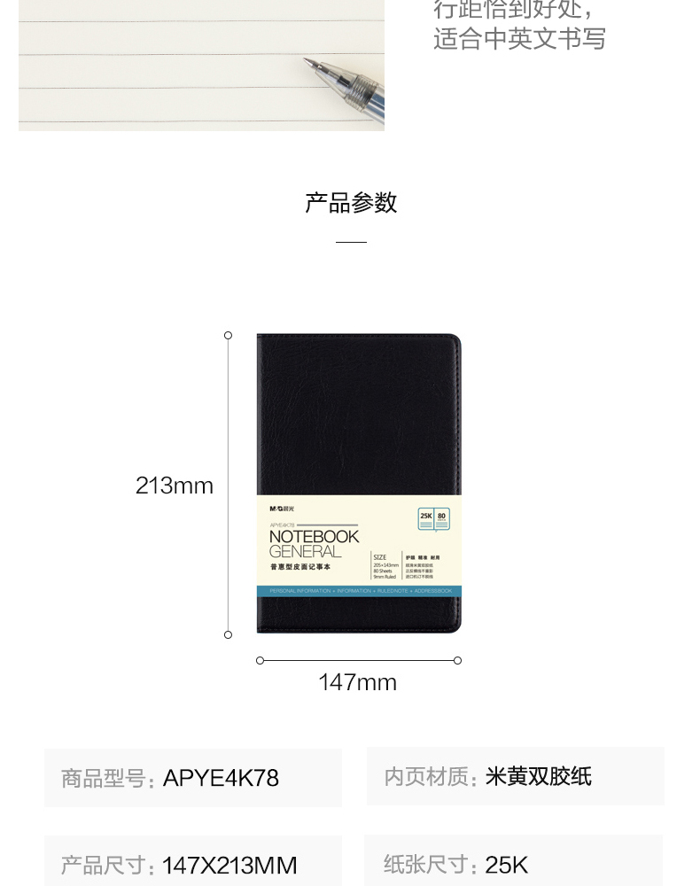 商品属性 [供应商] 科力普科技集团股份有限公司 [页数] 80页 [封面颜色] 黑色 [尺寸] 213*147mm [品牌] 晨光 [型号] APYE4K78 [内包装] 80页
