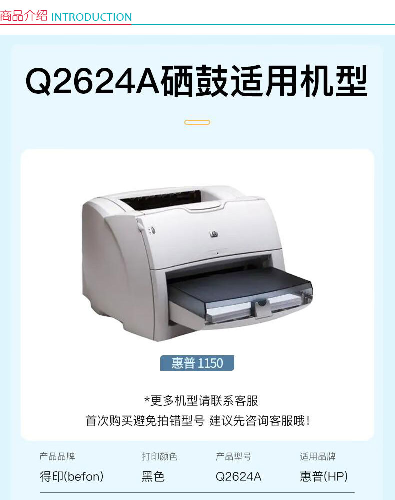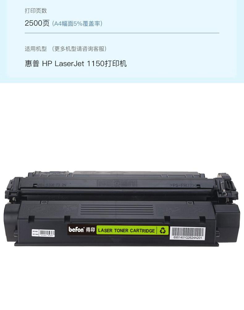 商品属性 [供应商] 科力普科技集团股份有限公司 [打印量] 2500页 [商品毛重] 900克 [适用机型] 惠普 HP LaserJet 1150打印机 [品牌] 得印