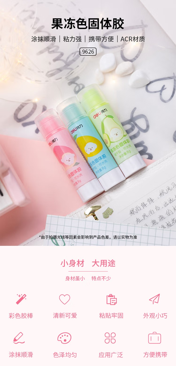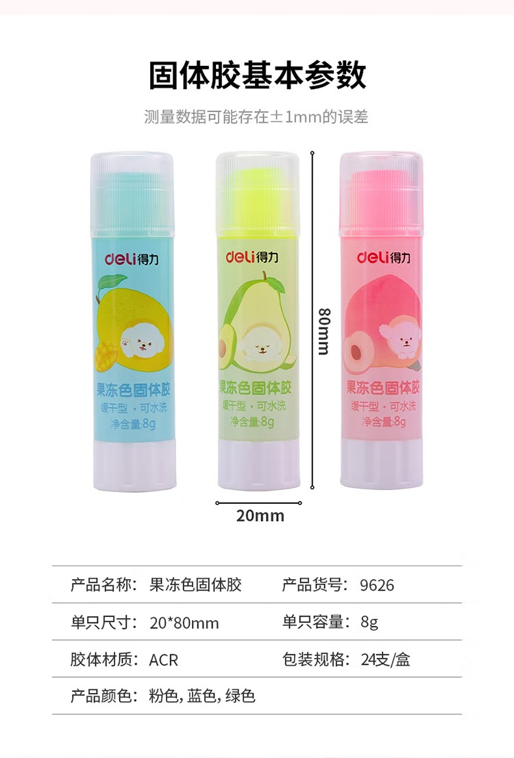 商品属性 [供应商] 深圳市怡亚通供应链股份有限公司 [品牌:] 得力(deli) [型号:] 9626 [规格:] 8g 24支/盒