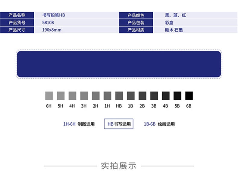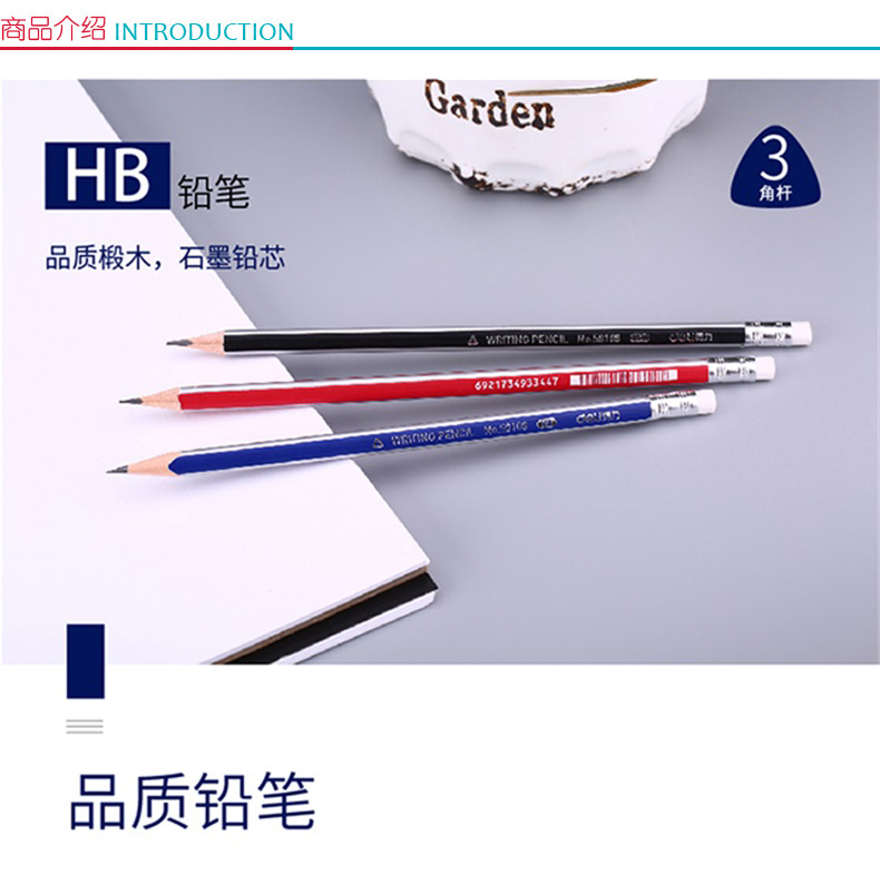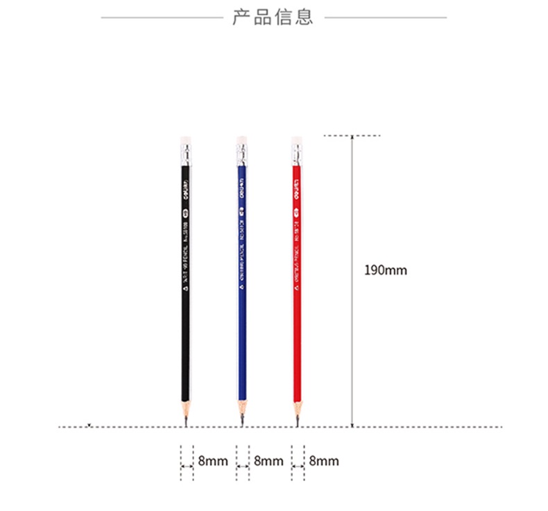 商品属性 [供应商] 科力普科技集团股份有限公司 [入数] 1盒 [笔杆颜色] 其它 [硬度] HB [品牌] 得力 [型号] 58108 [内包装] 12支/盒