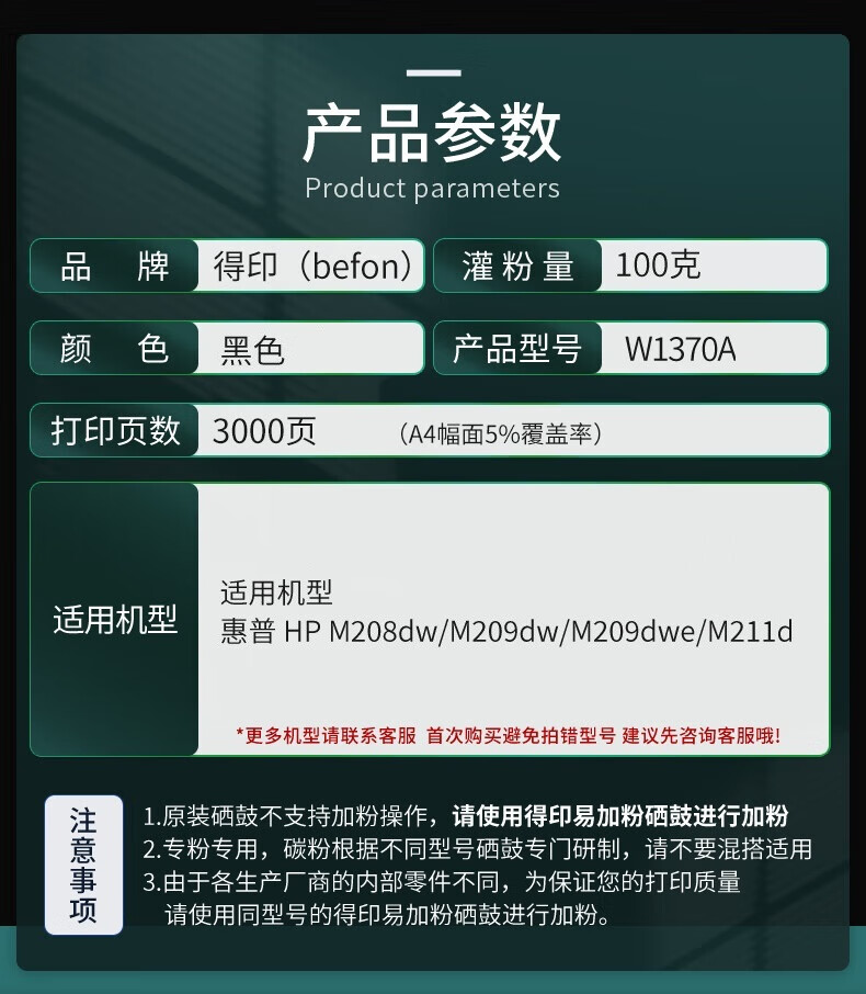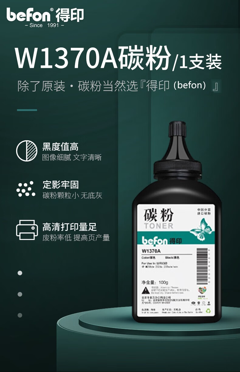 商品属性 [供应商] 北京京东世纪信息技术有限公司 [品牌] 得印(befon) [型号] W1370A [品牌类型] 通用耗材