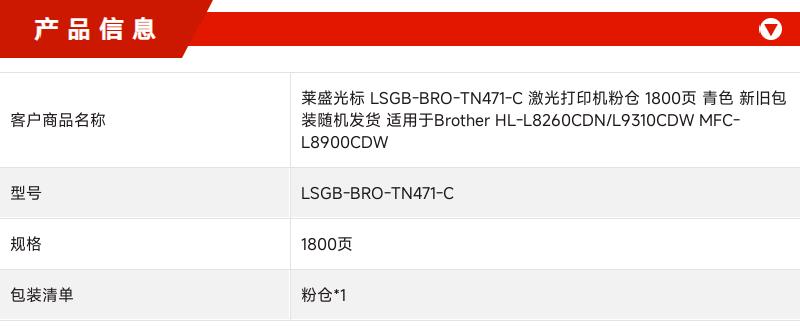 商品属性 [供应商] 史泰博(上海)有限公司 [品牌] 莱盛光标 [型号] LSGB-BRO-TN471-C