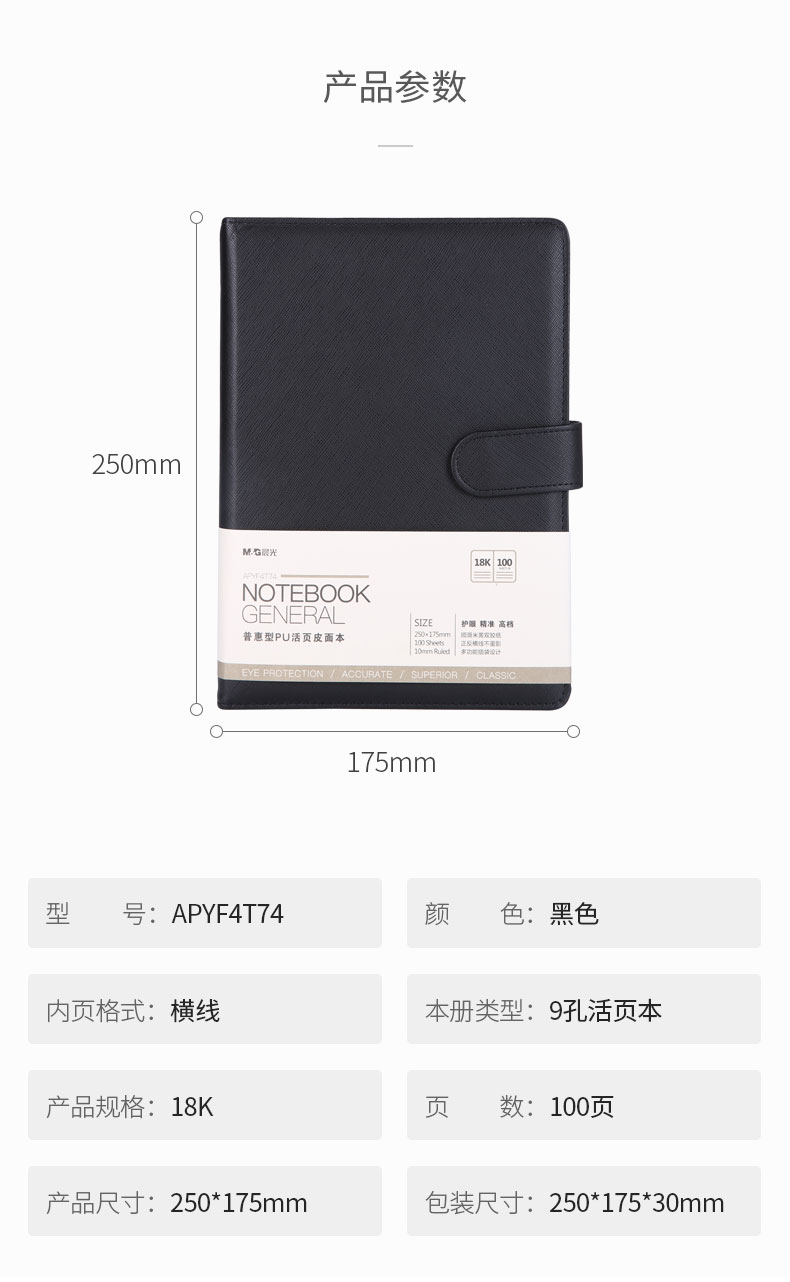 商品属性 [供应商] 德致商成集团有限公司 [适用场景] 职场 [封面硬度] 软面抄 [商品毛重] 0.7kg [页数] 100页 [规格页数] 100页 [内芯幅面规格] 18k [封面材质] 仿皮 [商品产地] 中国大陆 [数量] 单本 [装订方式] 线圈/螺旋 [类型] 笔记本/记事本